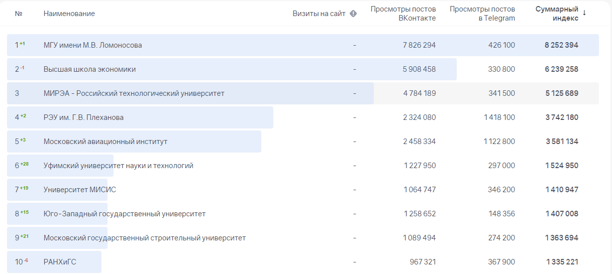 | Уважаемые коллеги, исследовательская команда "Социального навигатора" МИА "Россия сегодня" и система анализа социальных медиа и СМИ Brand Analytics представляют линейку рейтингов результативности коммуникационных стратегий российских университетов.