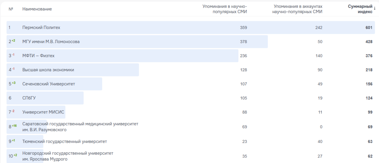 Рейтинг представленности в научно-популярных СМИ (III квартал 2025)