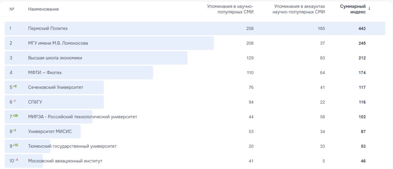 Рейтинг представленности в научно-популярных СМИ (I квартал 2025)