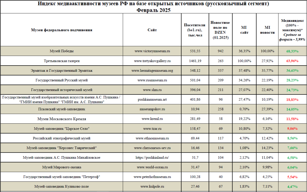 Уважаемые коллеги, исследовательская команда "Социального навигатора" МИА "Россия сегодня" представляет вам результаты независимого мониторинга результативности реализации медиастратегий музеев на российском информационном поле.